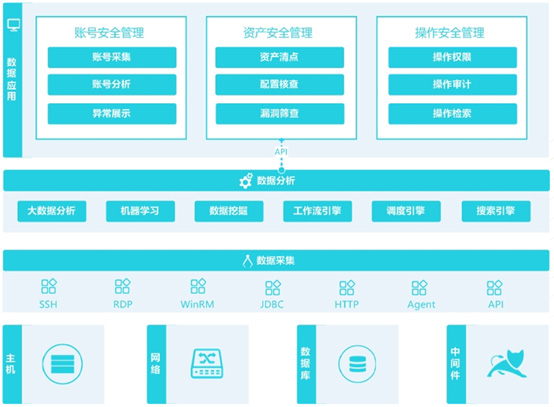 功過遠程協(xié)議、API等方式,自動到服務(wù)器、網(wǎng)絡(luò)設(shè)備、數(shù)據(jù)庫、中間件上采集各種與安全相關(guān)的數(shù)據(jù)。