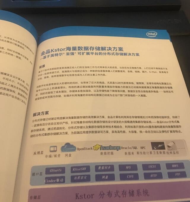 金品作為英特爾在中國(guó)的重要的合作伙伴之一,憑借多年的行業(yè)沉淀和專(zhuān)業(yè)化的技術(shù)服務(wù)能力,為行業(yè)客戶(hù)提供定制產(chǎn)品和服務(wù),最大程度滿足客戶(hù)的需求,贏得了客戶(hù)的信任與尊重,也獲得了市場(chǎng)的認(rèn)同。同時(shí)也為英特爾技術(shù)與解決方案的推廣和應(yīng)用做出了積極的貢獻(xiàn),本次峰會(huì)金品公司帶來(lái)了基于英特爾®至強(qiáng)®可擴(kuò)展平臺(tái)的分布式存儲(chǔ)解決方案——“金品Kstor海量數(shù)據(jù)存儲(chǔ)解決方案”